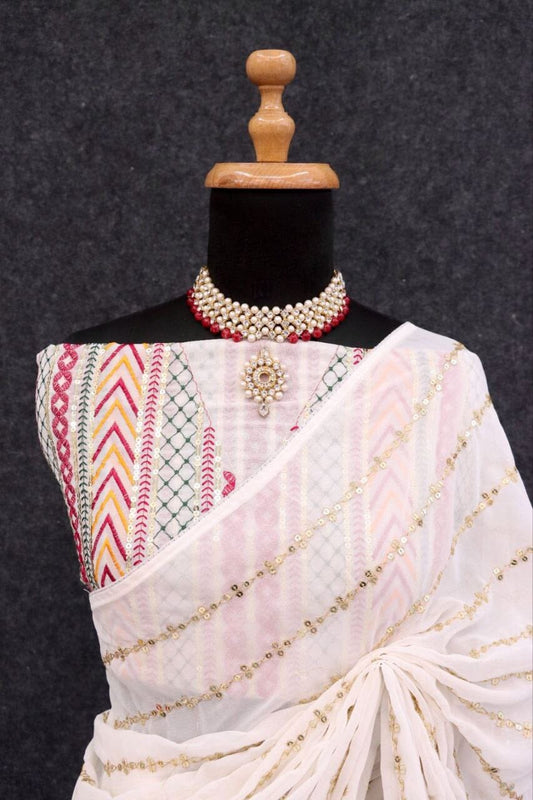 বিক্রয় ( ছাড় )শিফন জর্জেট শাড়ির সাথে বহু রঙের ব্লাউজ