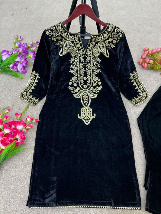 Black Velvet Party Wear Kurti with Matching Pant Set