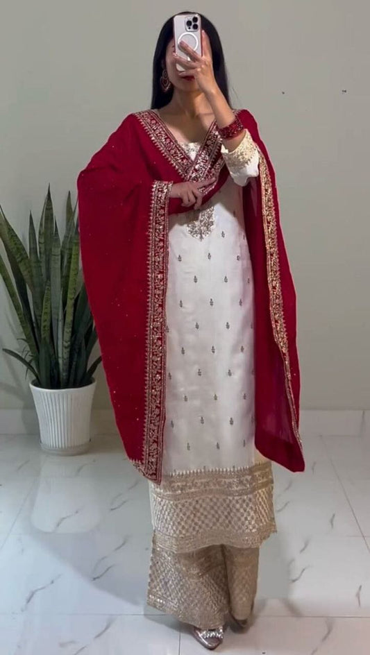 டிசைனர் வெள்ளை சிவப்பு சின்னான் பட்டு எம்பிராய்டரி வரிசை வேலைப்பாடு உடைவிற்பனையாளர்:Shopin Di Apparelsவழக்கமான விலை $70.00வழக்கமான விலைஅலகு விலை / ஒன்றுக்கு$88.00விற்பனை விலை $70.00விற்பனை