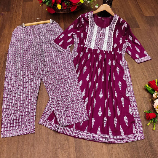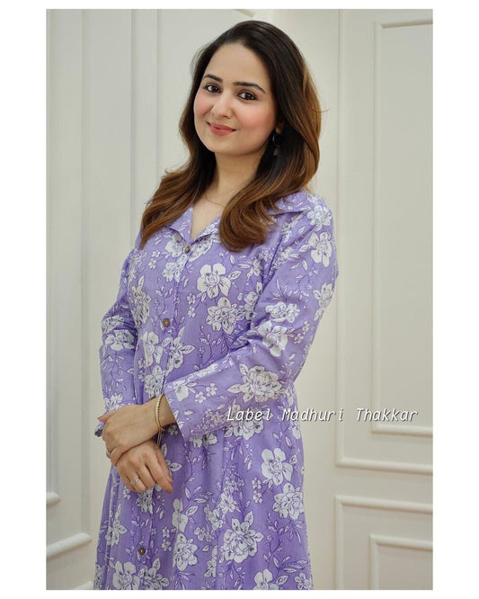 லாவெண்டர் பர்பிள் பாலி ரேயான் டிஜிட்டல் பிரிண்டட் குர்தி மற்றும் பேன்ட்