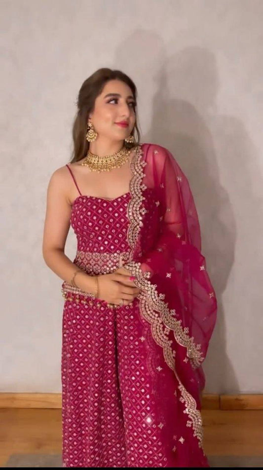 பிங்க் ஃபேன்ஸி வேர் ஜார்ஜெட் ஷராரா சூட்