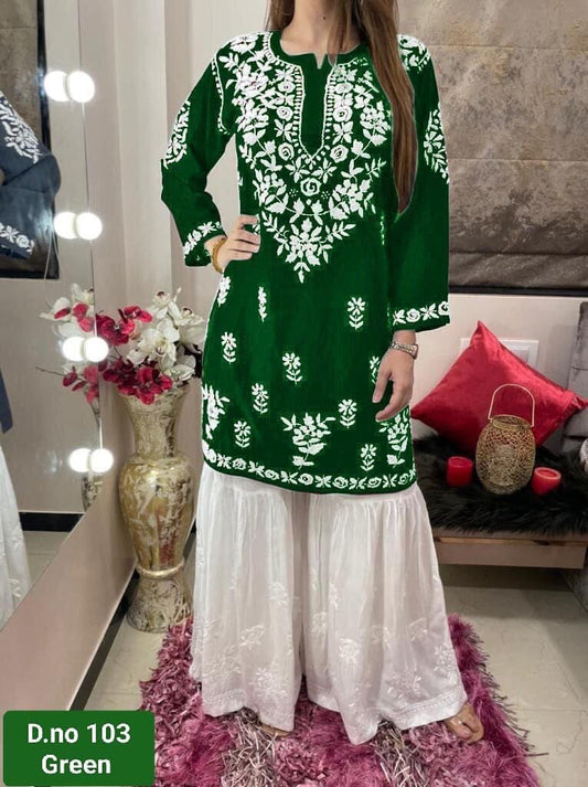 உங்கள் அளவுகளுக்கு ஏற்றவாறு புதிய ஷராரா சூட்ஸ் ரெடி கலெக்ஷன் எங்களிடம் உள்ளது. "ஷராரா" என்று அழைக்கப்படும் ஆடம்பரமான அடிப்பகுதியுடன் கூடிய சூட். உங்கள் ஆர்டர்களை 2 வாரங்களுக்குள் டெலிவரி செய்கிறோம்.